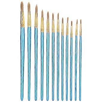 12kpl maalaussiveltimet Aseta Nylon Akvarelliöljy Akryylimaali sininen pidike