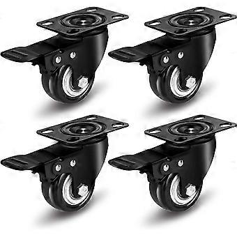 Sarja 4 50mm pyörää jarrulla, 4 kpl kääntyvät pyörät huonekaluihin/kuljetukseen, Huonekalupyörät, Raskas pyörä 300kg kokonaiskuormakapasiteetissa