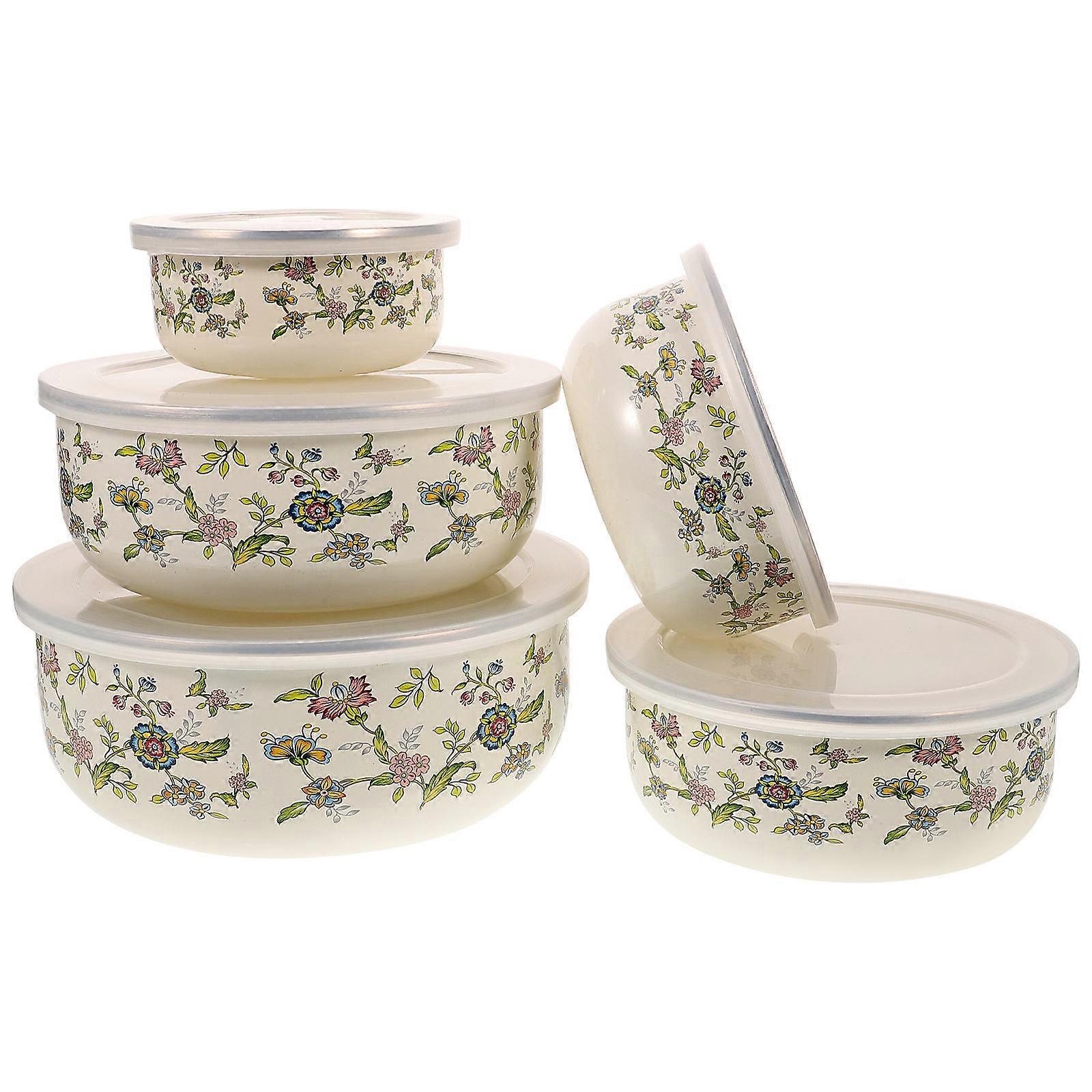 Serving Bowls Enamel Bowls with Lid for Salad Storage 15Pcs