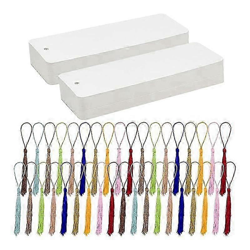 Set of 100 Blank Bookmarks with Colorful Tassels Crafting Material Pack Handmade Paper Bookmarks fo