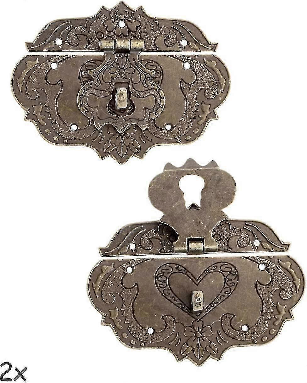 Set Of 2 Antique Bronze Iron Clasps, Furniture Clasps, Fittings For Curtain Padlocks, Locks On Chests And Sliding Boxes, 95 X 73 Mm With Screws, Set O