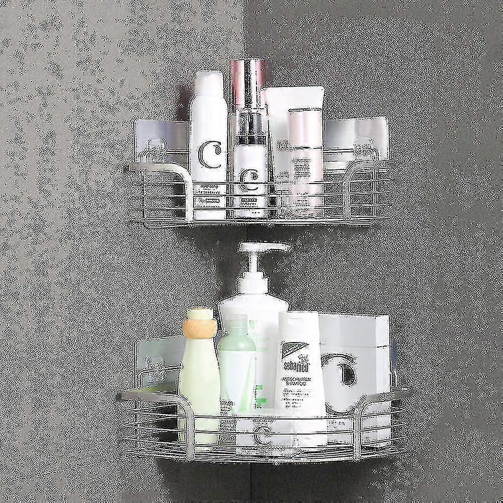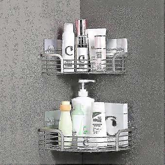 Set Of 2 Corner Shower Shelf Without Drilling Adhesive Bathroom Shelf Stainless Steel Triangle Basket Storage For Shampoo Soap With Hooks