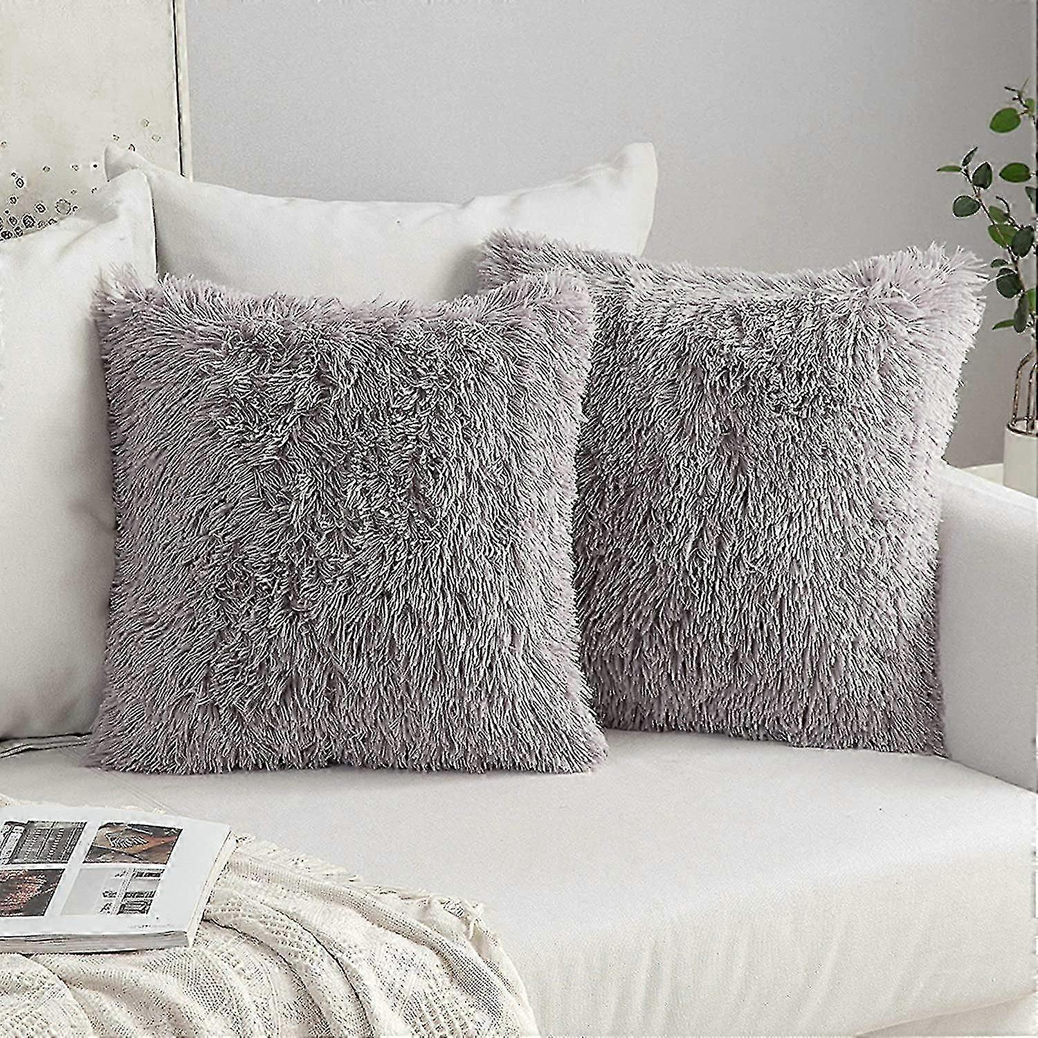 Set Of 2 Fluffy Faux Fur Cushions Soft Artificial Fur Throw Cushion