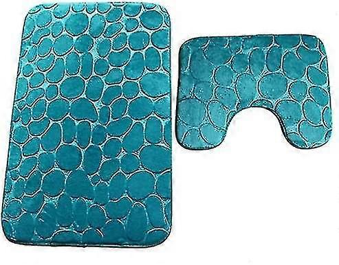 Set Of 2 Non-slip Bath Mats Soft Bathroom Pedestal Mats Absorbent Toilet Mat U-shape Contour Wc Machine Washable Green