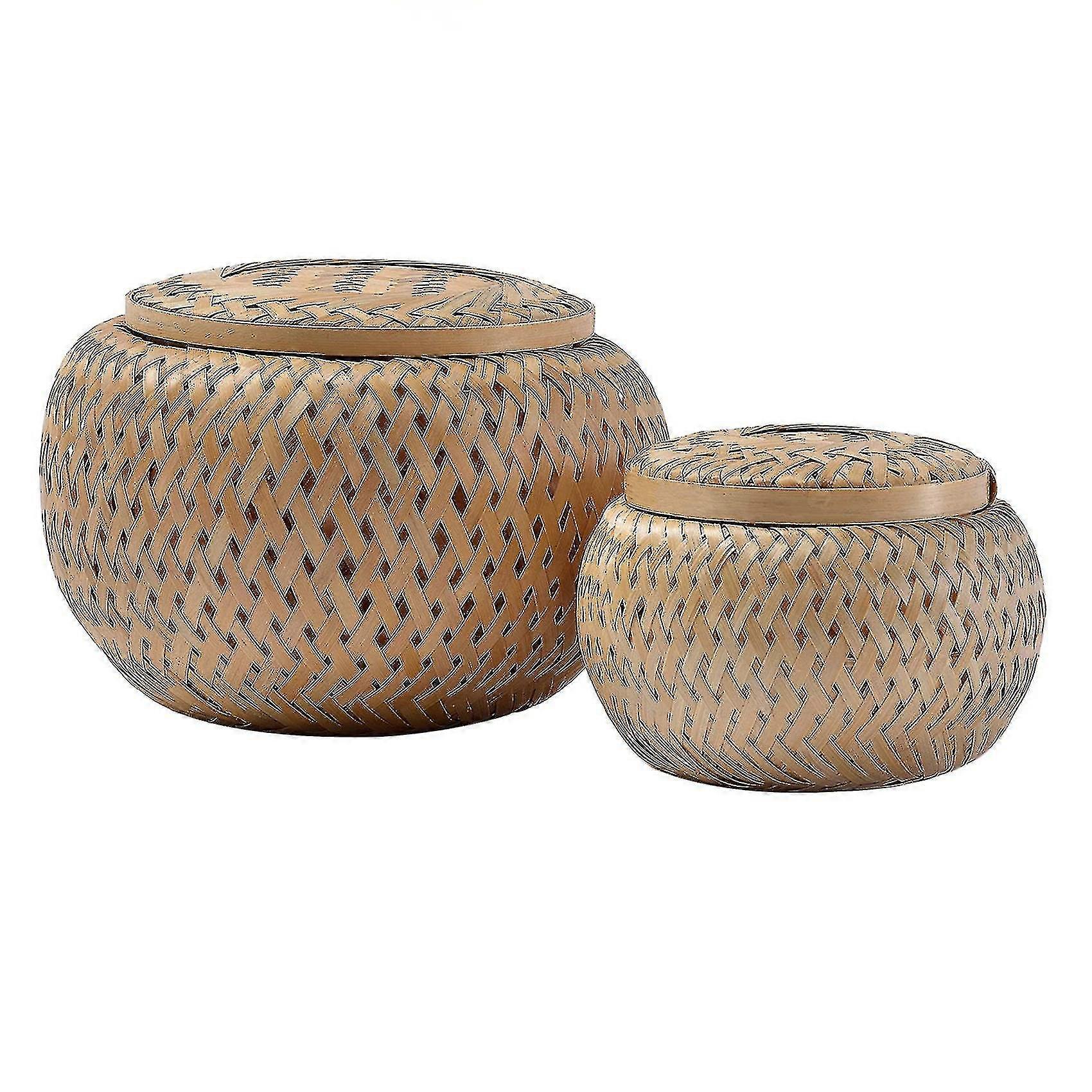 Set Of 2 Small Decorative Bamboo Baskets With Lid For Storing Small Items Handmade And Braided Bamb