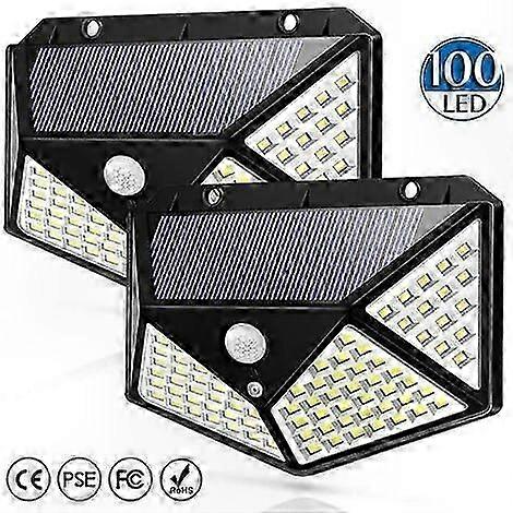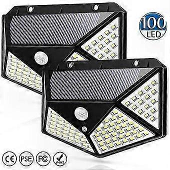 Set of 2 solar floodlights with motion detector 100LED support 270 degrees Color: Black