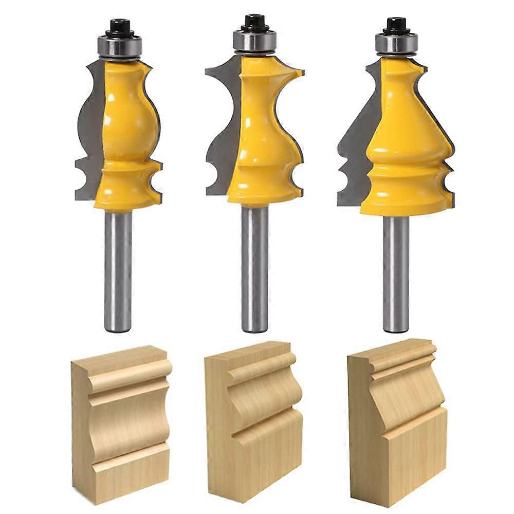 Set of 3 routers for architectural mouldings, 8mm Shank Wood Milling Cutting Tool Wood Cutter Drawer Carving Knife Carpenter Tools Router Milling Bit