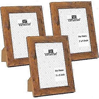 Set of 3 Rustic Wooden Picture Frames - 5x7" - Glass Front