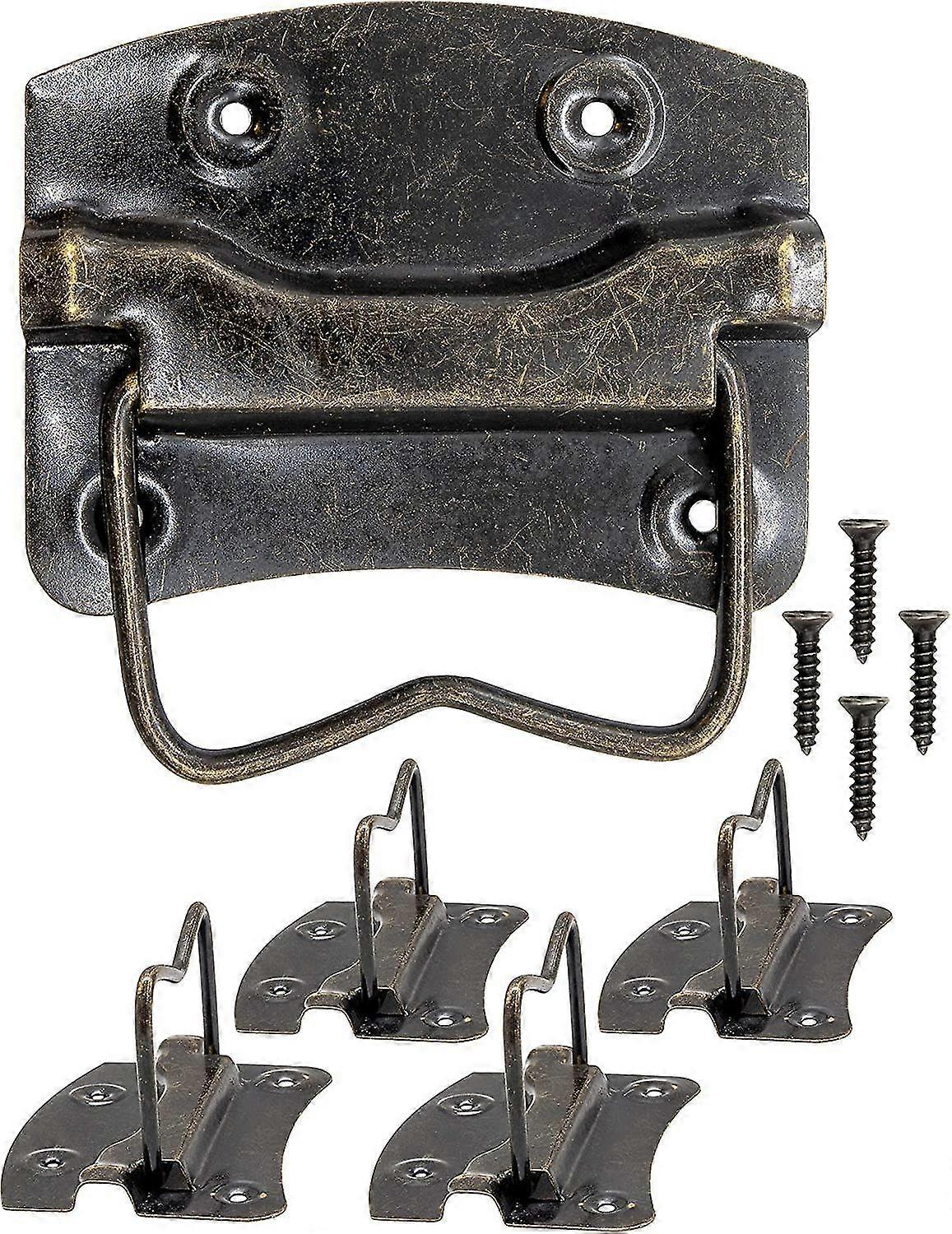 Set Of 4 Antique Folding Handles For Chests, Boxes, Chests Of Drawers, Antique Bronze Brass Design, 76 X 72 Mm, Set Of 4