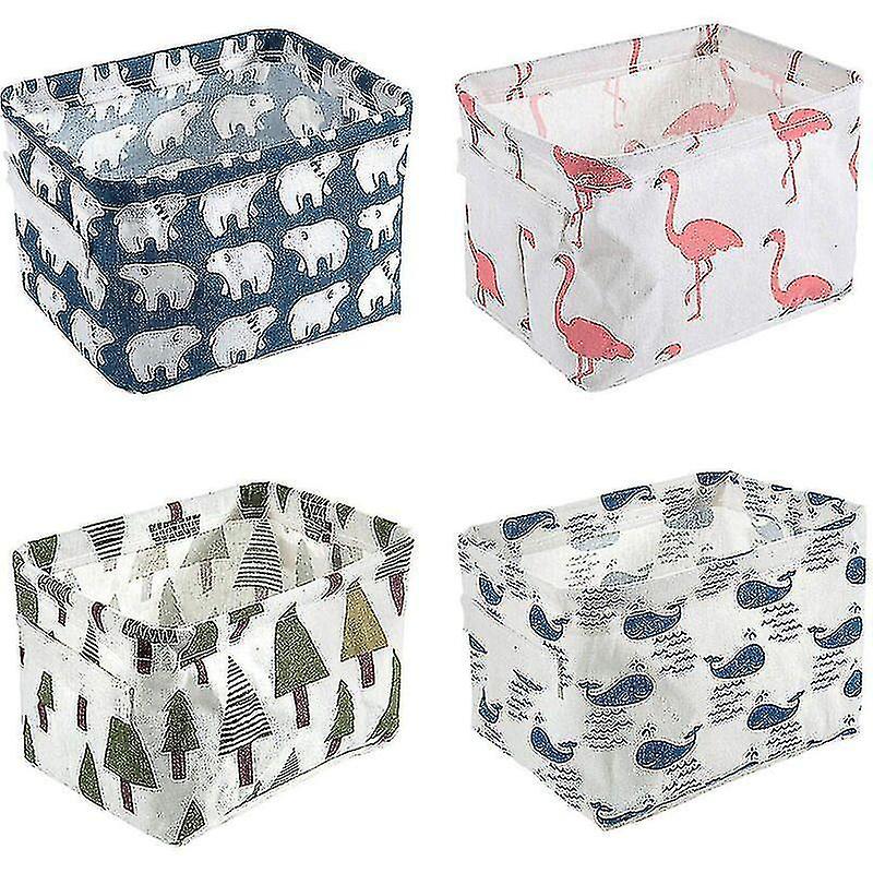 Set Of 4 Fabric Storage Baskets Small Foldable Storage Box Organizer Storage Cube For Tagres And Des