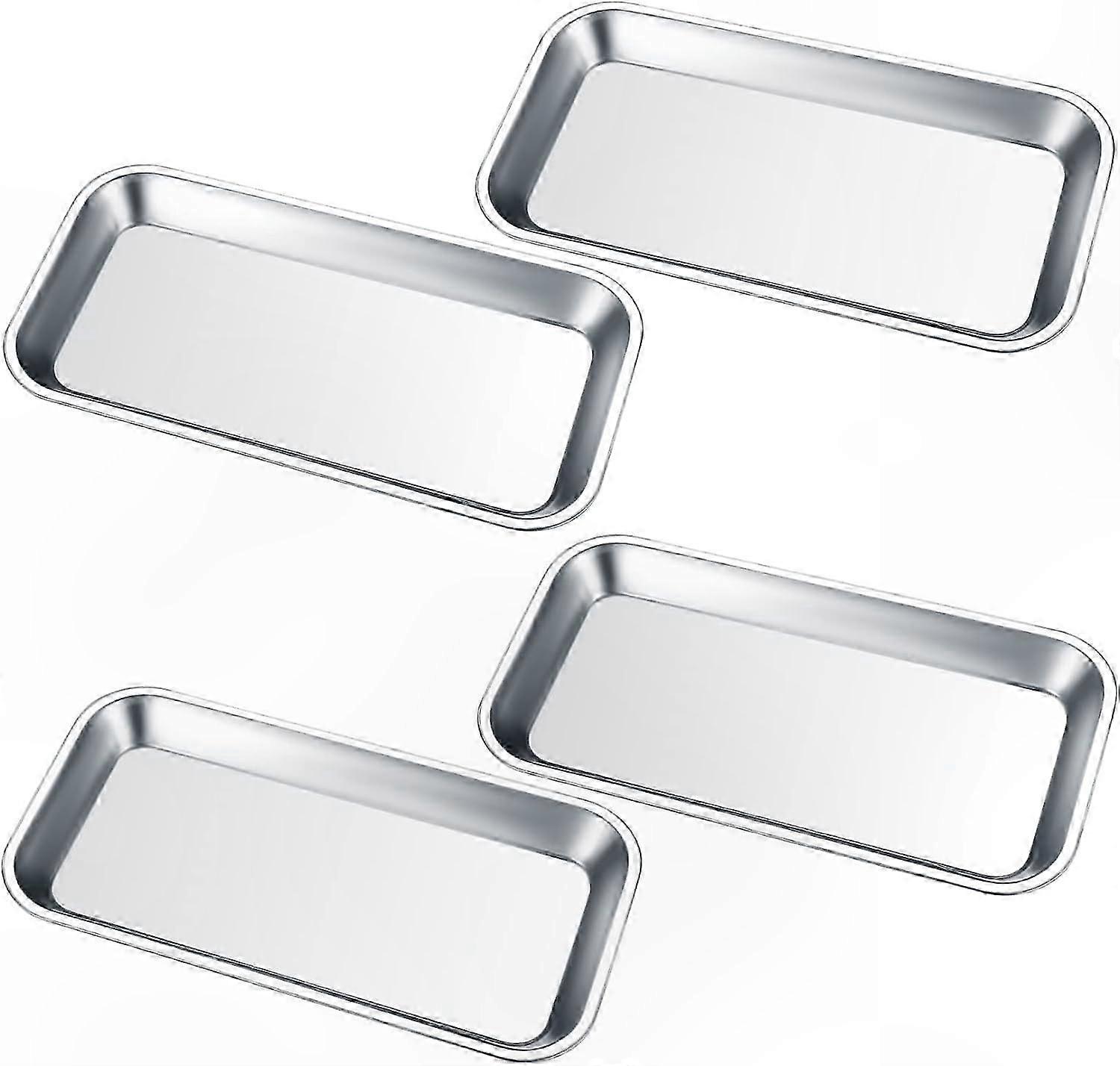 Set of 4 Stainless Steel Rectangular Trays for Laboratory Use, Durable and Easy-to-Clean Lab Trays