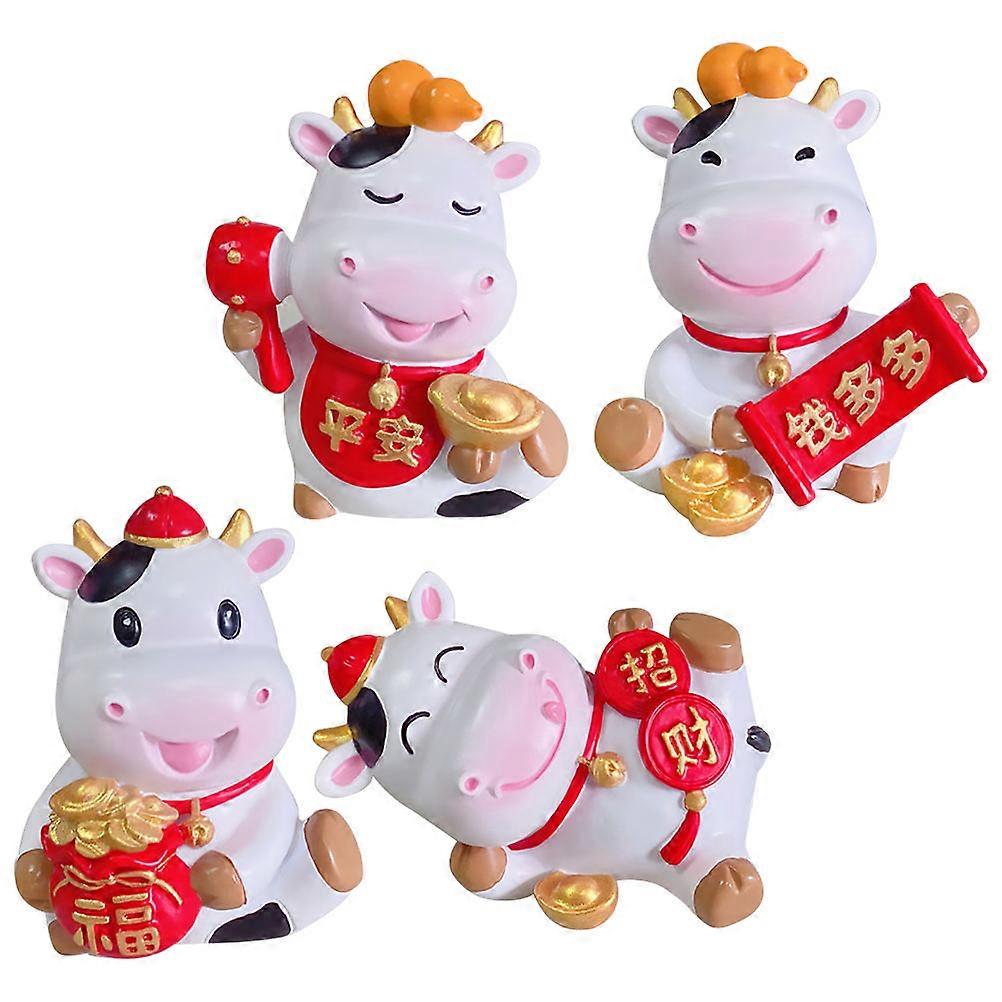 Set of 4Pcs Red Resin Cattle Auto Ornaments for Party Cake Decoration