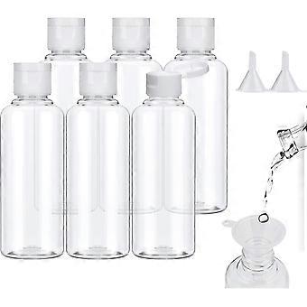 Set Of 6 100ml Plastic Travel Bottles With 2 Small Funnels - Clear Plastic - With Small Funnel