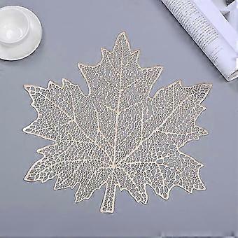 Set Of 6 Leaf Placemats for Dining Table Vinyl Metallic Table Mats Hollow Out Maple Leaf Place Mats