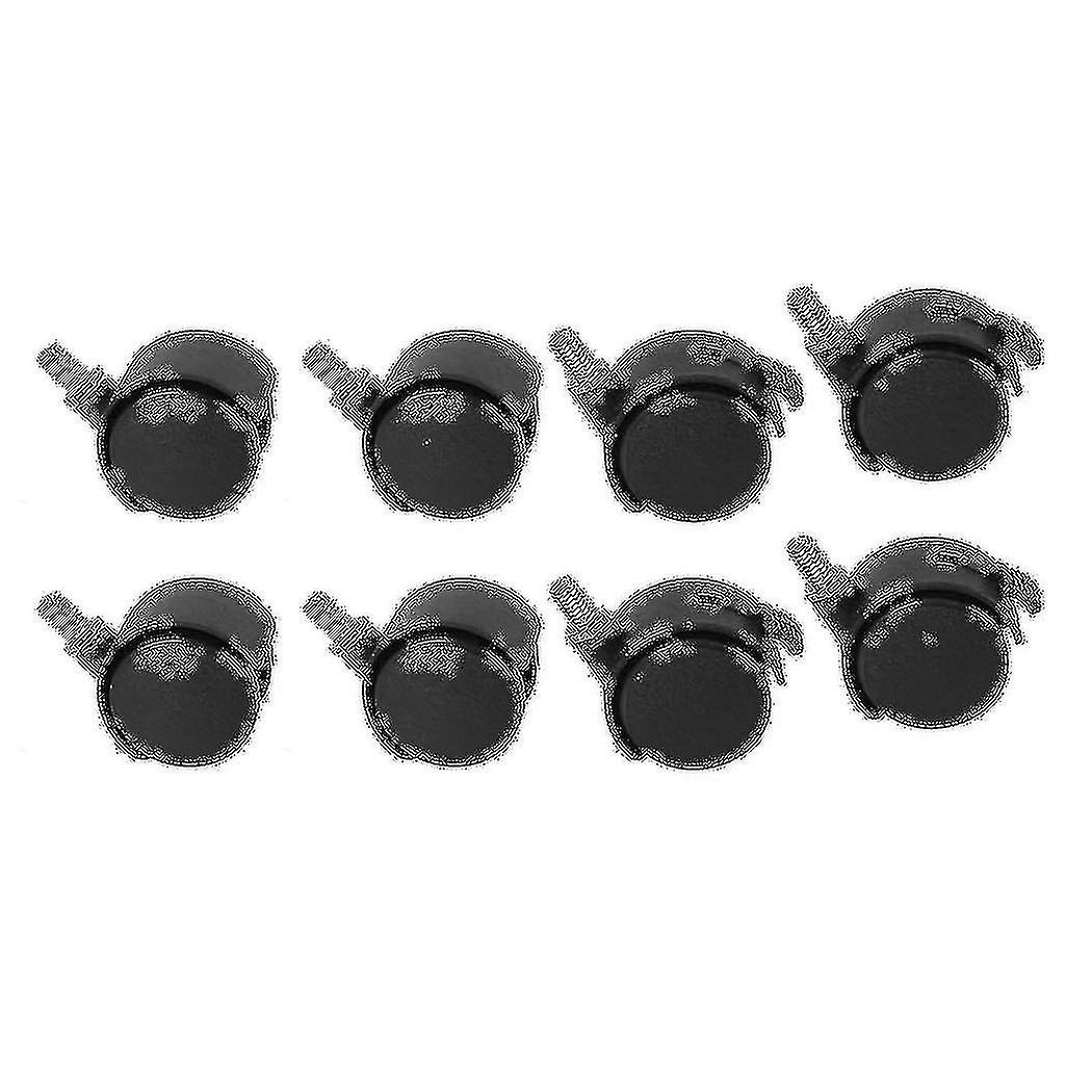 Wheels - Set of 4 wheelsPerfect for TV stands, filing cabinets & other furnitureThreaded stem - Includes 2 locking castorswheel design - 360 Degree swivel - Black plastic wheelsStem length: 12mm - Thread size: M8/8mm - Wheel diameter: 40mm - Wheel height: 46mm - Total width: 39mmName: Universal castersColor: blackMaterial: PlasticQuantity: 8pcsPackaging includes: 8* plastic castersOnly the above package content, other products are not included.Note: Light and different displays may cause the color of the item in the picture a little different from the real thing. The measurement allowed error is +/- 1-3cm.