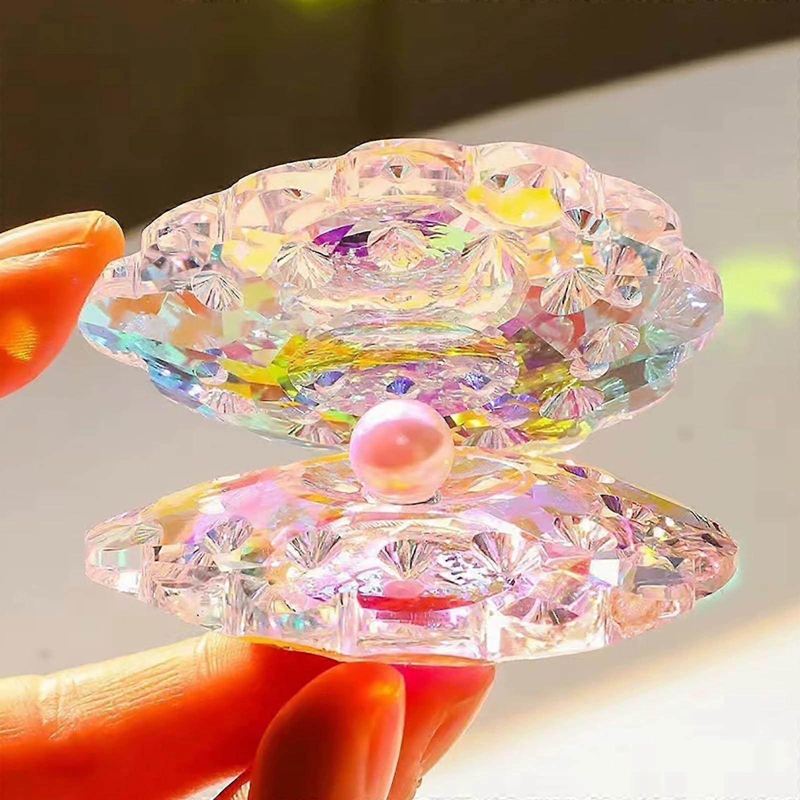 Shellshaped crystal ornament, crystal shell with pearl, crystal shell figurine, colorful crystal figurine