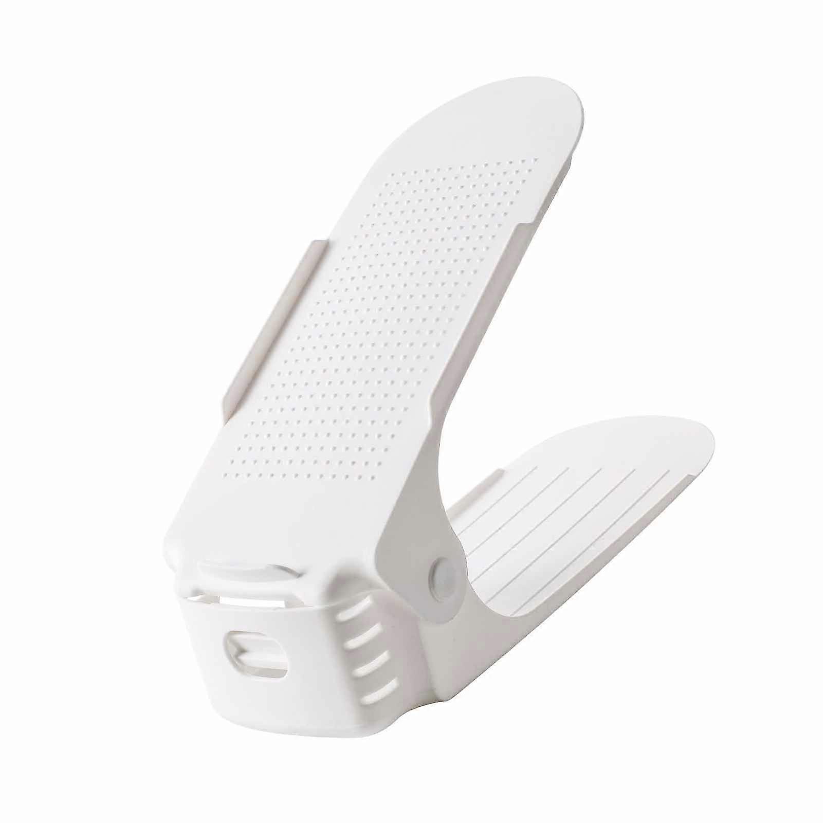 Shoe Slots Organizer 2 Layers Adjustable Space Saving Anti Slip Strong PP Shoe Stacking Tool for Home Cabinet Rack White