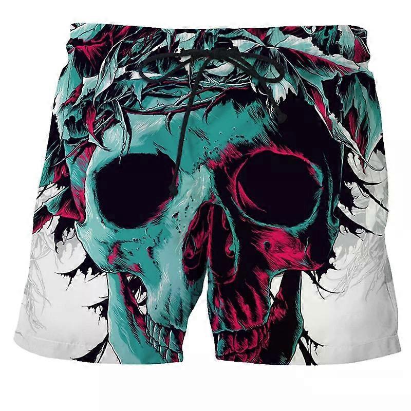 Short de plage imprim�� crane en 3D pour hommes, short de sport d��contract��, Cool flamme crane, s��chage rapide, maillot Hip Hop pour hommes