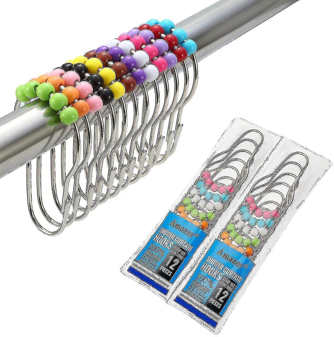 Shower Curtain Hooks Rings, Stainless Steel Rust-resistant Shower Curtain Rings And Hooks-set Of 24- Matte Black