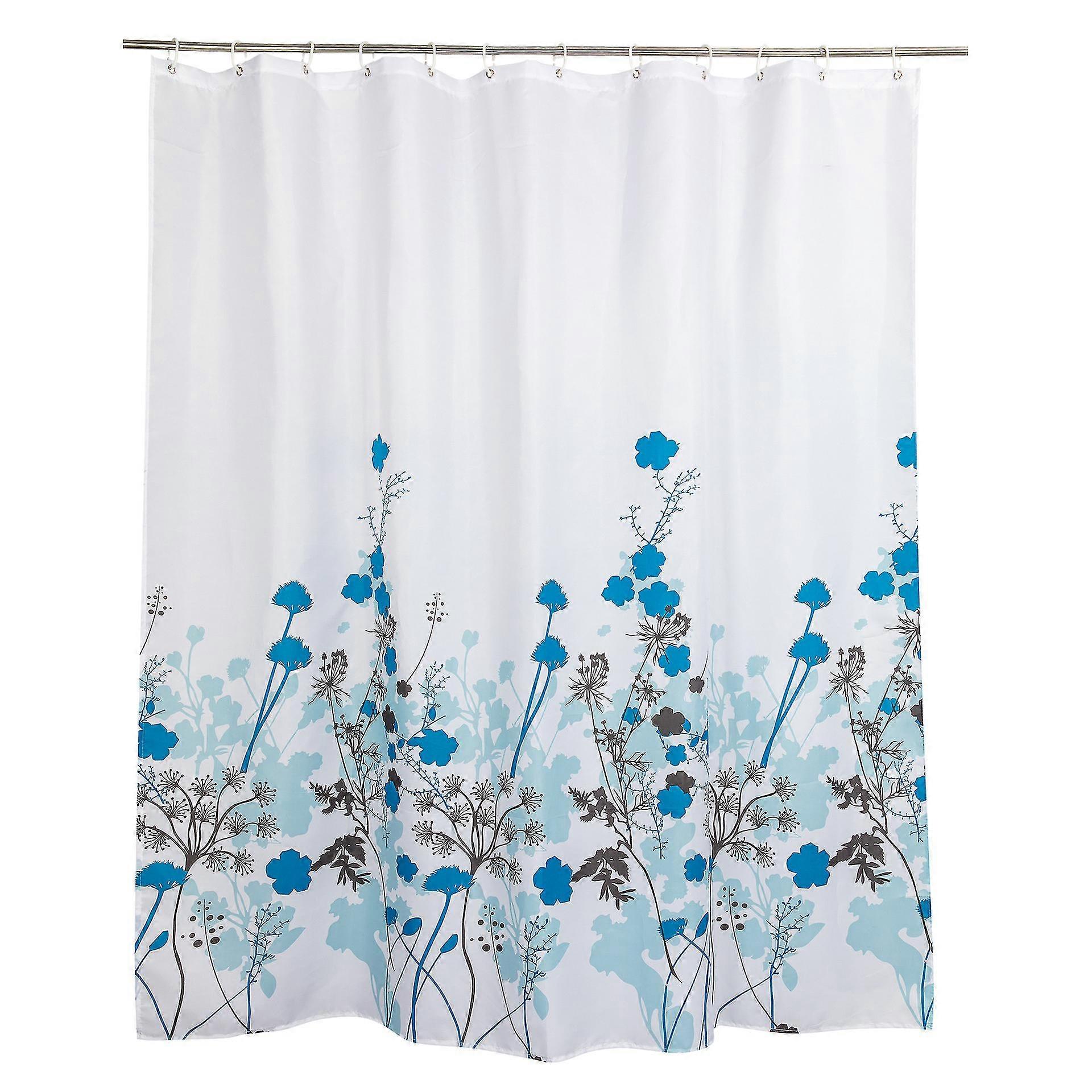 Shower Curtain Mould And Mildew Resistant 180 X 180 Cm (71 X 71 Inch) Polyester - Flower Pattern (1 Pcs, Blue)