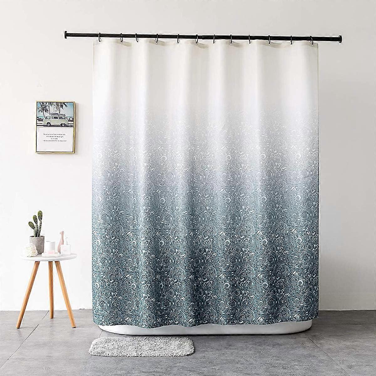 Shower Curtain Polyester Fabric Machine Washable with 12 Hooks 72x72 Inch (Gradient Blue)