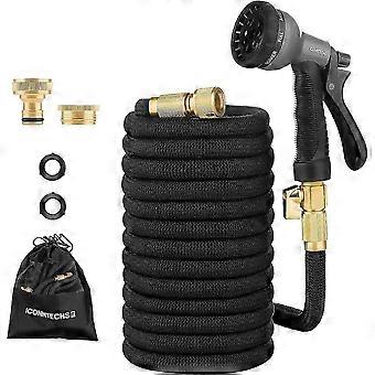 Shrink Hose, 30 M/100 Feet Flexible Water Hose with 3/4 and 1/2 Solid Brass Fittings, Includes Shut-off Valve and 8 Functional Nozzles, Suit