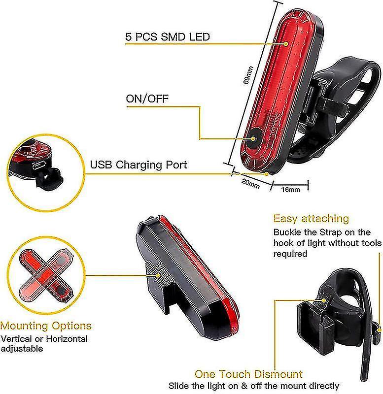Shxx Super Bright Usb Rechargeable Bike Tail Light, 4 Light Modes, Easy To Install, Suitable For Men