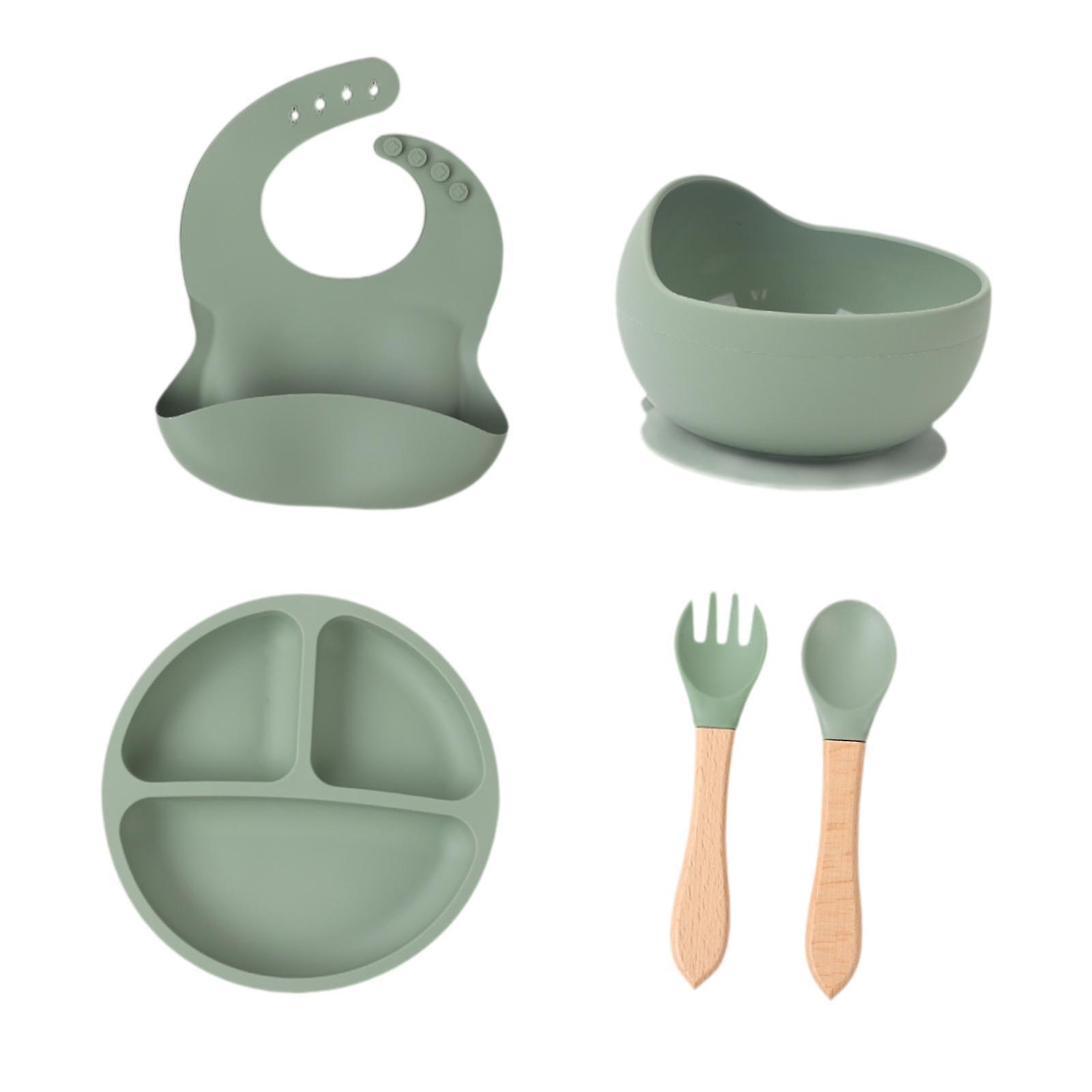 Silicone Baby Feeding Set Tableware Set Feeding Baby Utensils Fork and Spoon 5pcs set