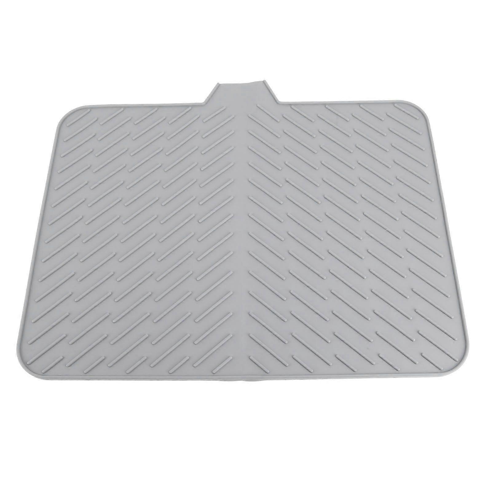 Silicone Dish Drying Mat with Built in Drain Lip Prevent Water Build Up Drying Pad Tray for Kitchen Grey