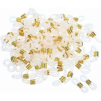 Color: White Rose Gold; Material: Silicone, Metal; Diameter: 4mm / 0.16"; Size: 20mm x 6mm x 4.5mm / 0.79" x 0.24" x 0.18" (L*W*Spring length) Advantage: These eyeglass chain connectors allow you to adjust the eyeglass strap size according to your head size. Made of soft material, they are comfortable to touch and ideal for people who wear glasses throughout the day. The connectors are secure and not easy to fall off, fitting most types of eyeglass arms. Instruction: One loop connects to the eyeglass strap and the other loop connects to the eyeglass arms. Application: This eyeglass chain connector is designed to be installed on an eyeglass strap to secure your glasses around your neck, helping prevent loss or damage during sports or other activities. Note: Please confirm the size before ordering.