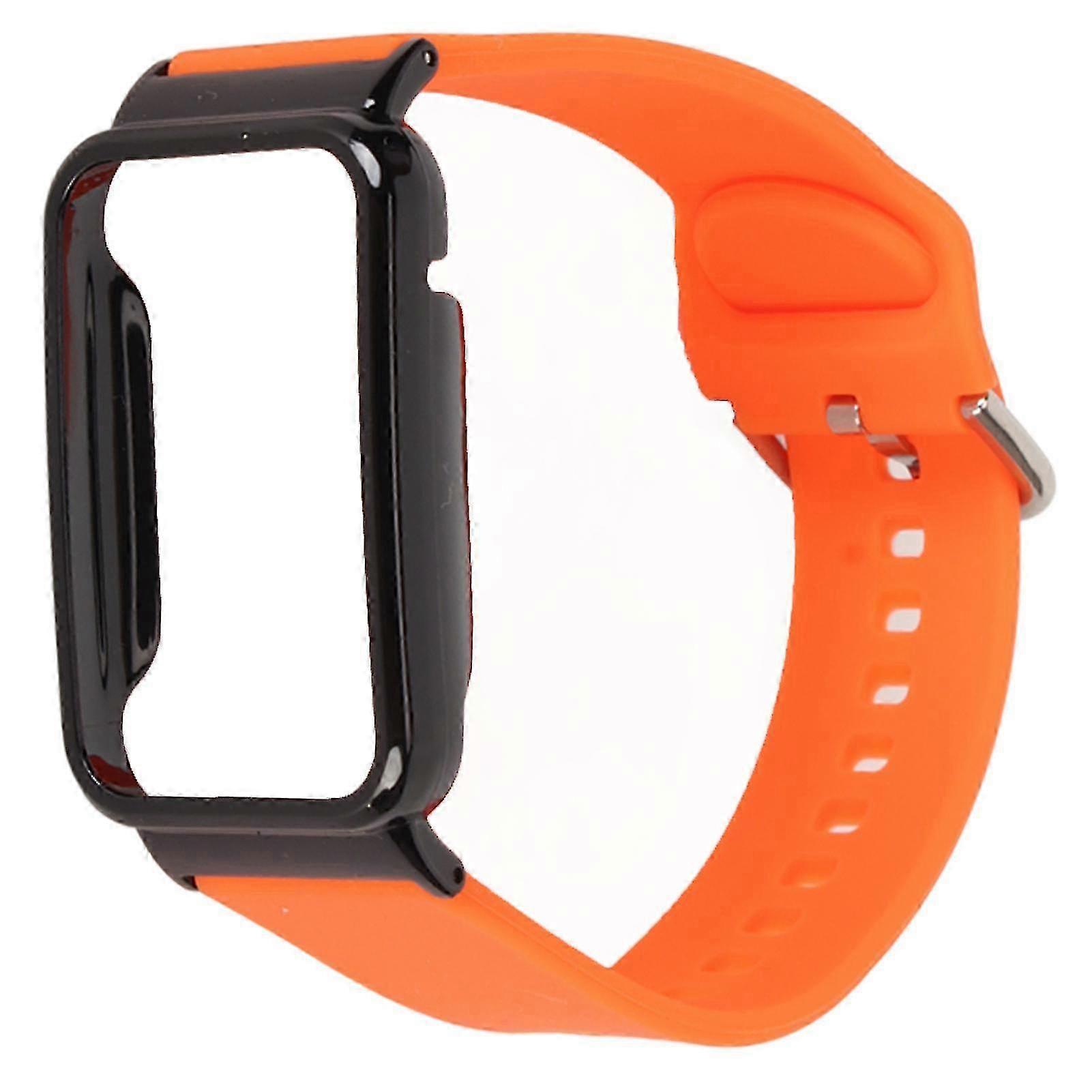 Silicone Watch Strap Band with Protective Bumper Case Replacement Accessory for Compatible Device in Orange and Black