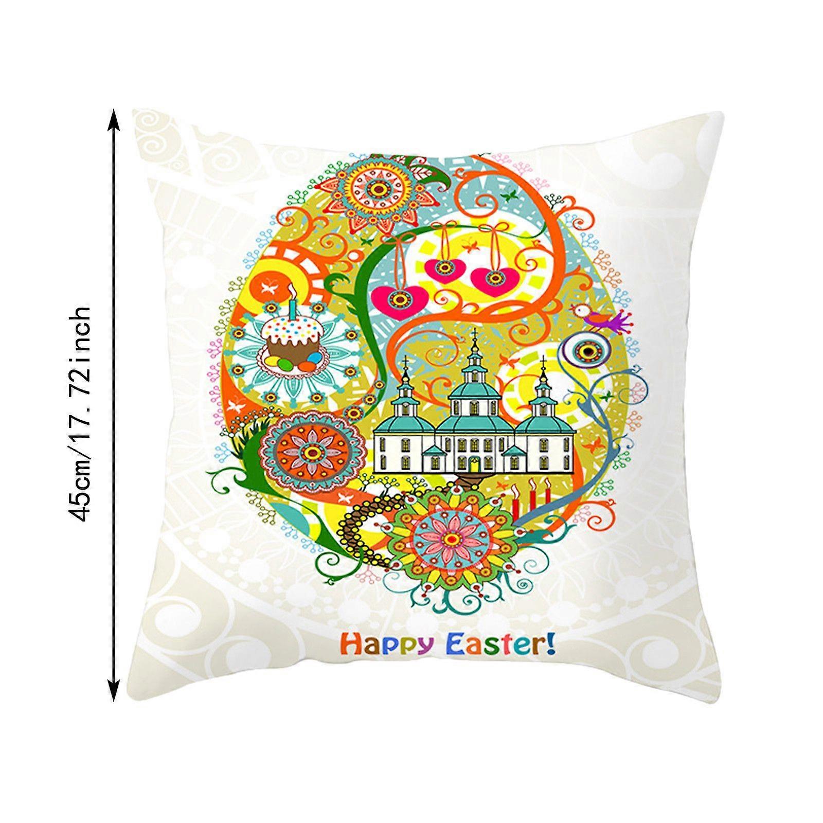 Silk Pillow Cases Easter Throw Pillow Covers Cartoon Easter Bunny Eggs Decorative Pillowca