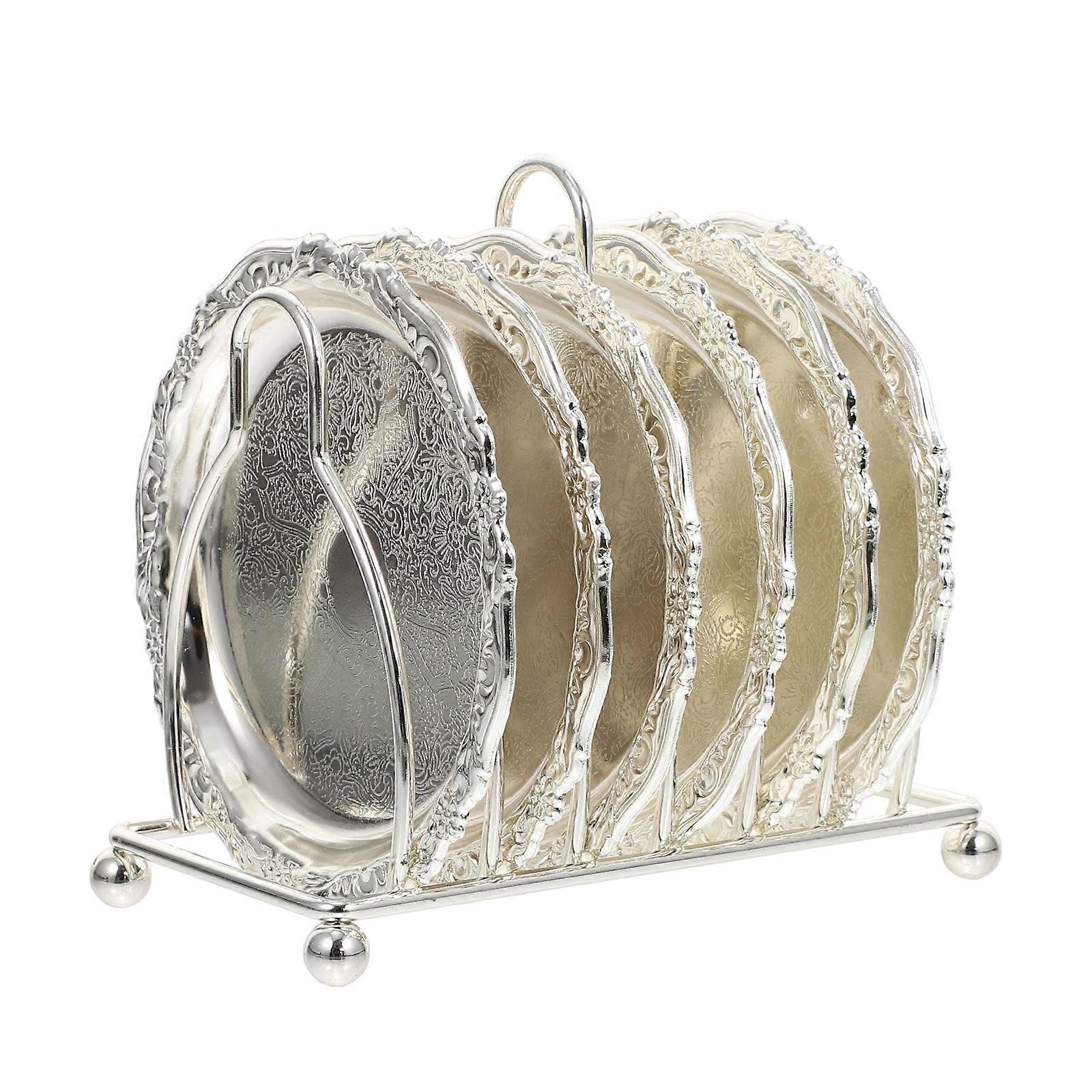 Are you still worrying about the hot water cup being hot to your beloved table? Then, you miss our coasters. Creative coasters can match your cups. It can not only protect the table, but also decorate your table well. Special family, friends and colleagues. Features -Material: Zinc alloy -Size: 14.00X11.50X10.90cm/5.50X4.52X4.28in -Using zinc alloy materials and made by fine craftsmanship, it is sturdy and . -The cup mat can protect your table, desk, countertop, furniture from scratches and stains. -This decorative coaster can impress your guests and make your dining table unique. -Practical design allows you and your guests to enjoy a drink quietly and pleasantly. -Perfect decoration for your living room, kitchen, , dining room and office, etc. Package list: 6 × Coasters 1 × Storage rack