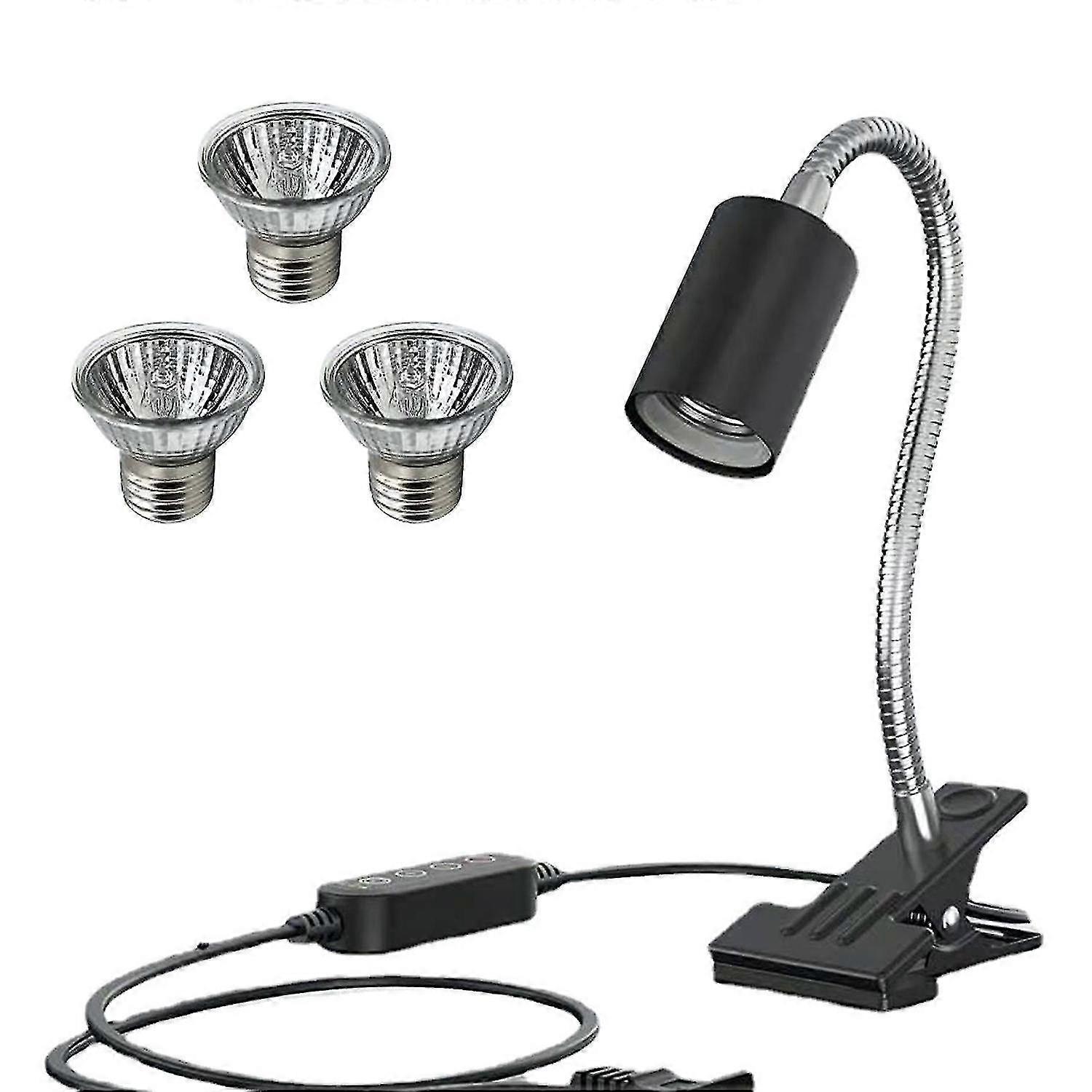 Simple Deluxe Reptile Heat Lamp Uva Uvb Full Spectrum Adjust Basking Spot Light Simple Deluxe Reptile Heat Lamp Uva Uvb Full Spectrum Adjust Basking Spot Light Features 1. Replacement Bulbs: UVA UVB reptile heat light provides two 50W light bulbs, which have simulate sunlight. UVA can promote appetite, and UVB can promote calcium absorption by reptiles. 2. Premium Material: The turtle heat lamp holder has heat resistance and safety. Socket is compatible with incandescent, fluorescent, UV bulbs, and ceramic heat emitters, etc. 3. Flexible & Easy to Use: A durable clamp with tension can install it easily in any position you want. The flexible stainless steel tube can be rotated 360 without deformation. 4. Timing and Adjustable Temperature: The reptile lamp stand can be timed according to the reptile's needs. You can choose the appropriate bulb to adjust the brightness and heat, meeting the needs of reptiles at different times. 5. Widely Used: The turtle basking light is suitable for most reptiles, tortoises, lizards, snakes, spiders, birds, amphibians. Also can work with ordinary bulbs for lighting indoor plants, art studios, bedrooms, etc. Specification Material: Metal Color: Black Size: 28 x 10 x 6 cm, Light Bulb: 5 cm Weight: 31 g Plug Type: US, UK, EU Light Bulb: 50 W Package Include: 1 Reptile Heat Lamp Stand 3 Light Bulbs
