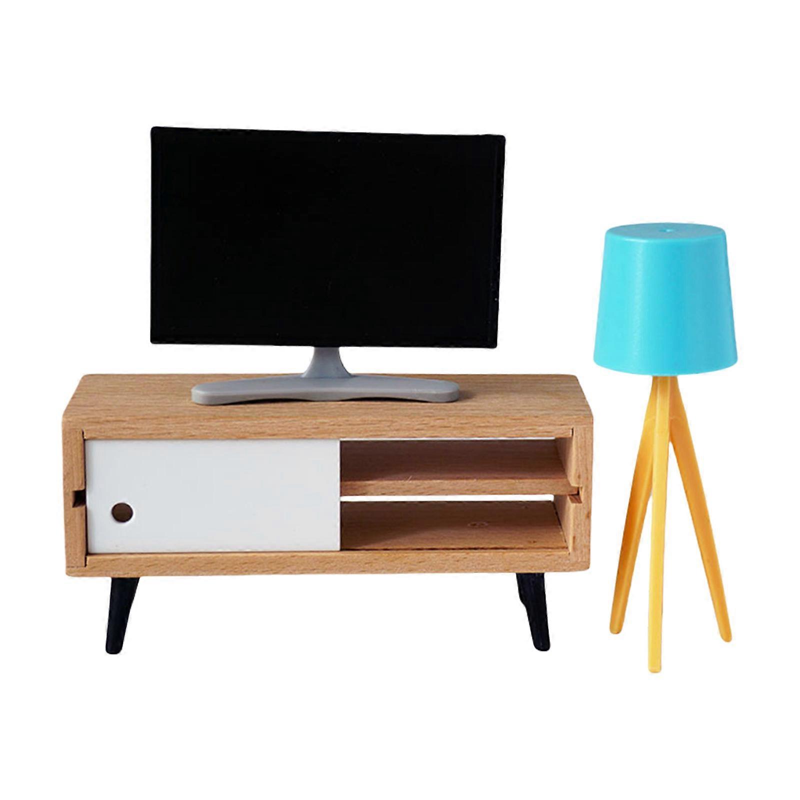 Simulation Dollhouses TV and Cabinet Set with Floor Lamp for Enhancing Miniature Home Interiors Display Model Furniture