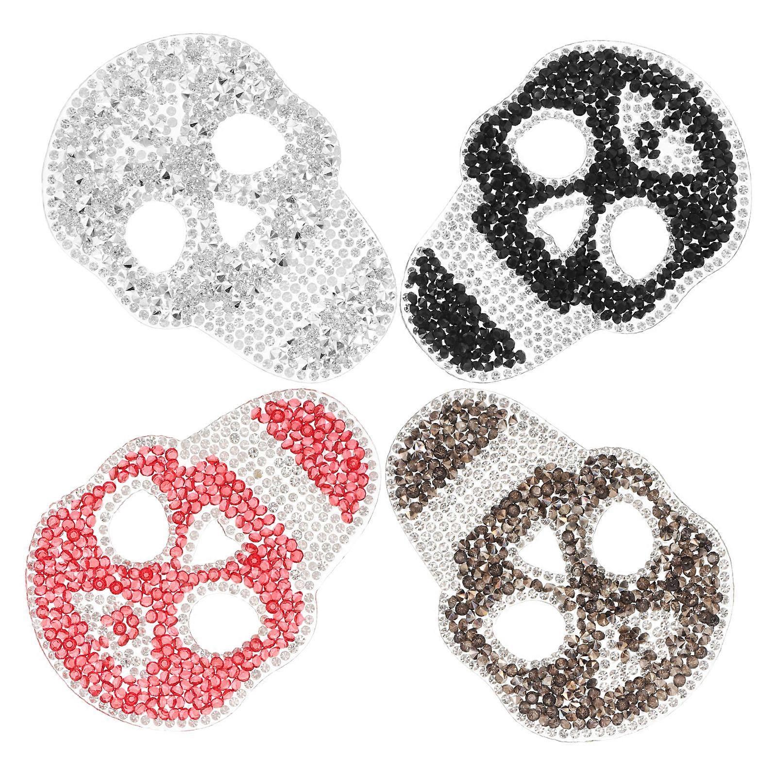 Skull Rhinestone Patch for Clothes with Assorted Color Resin Rhinestones for Crafts 4pcs