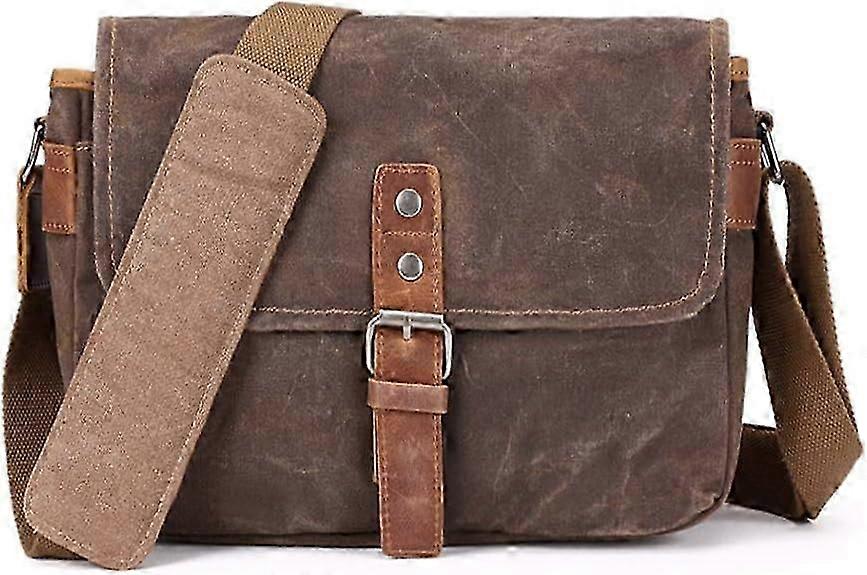SLR Camera Bag, Waterproof Wax Canvas Bag Vintage Camera Case Messenger Bag with Interlayer Pad