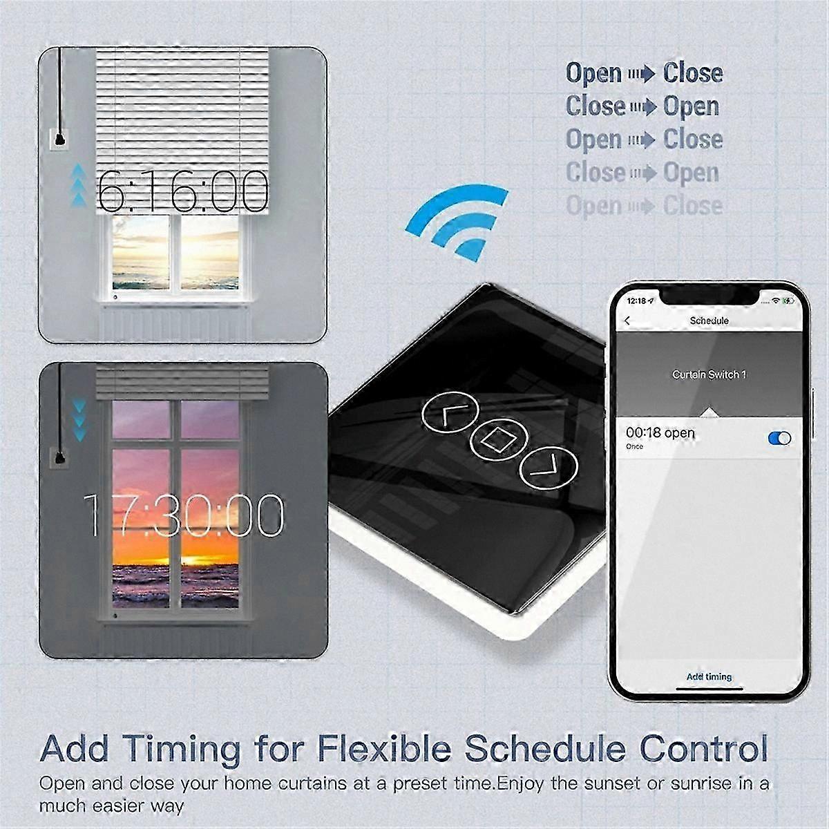 Smart WiFi RF433 Curtain Switch with 2.5D Arc Glass Touch Panel for Roller Blinds and Shutters, Wireless APP Control, Alexa-Compatible