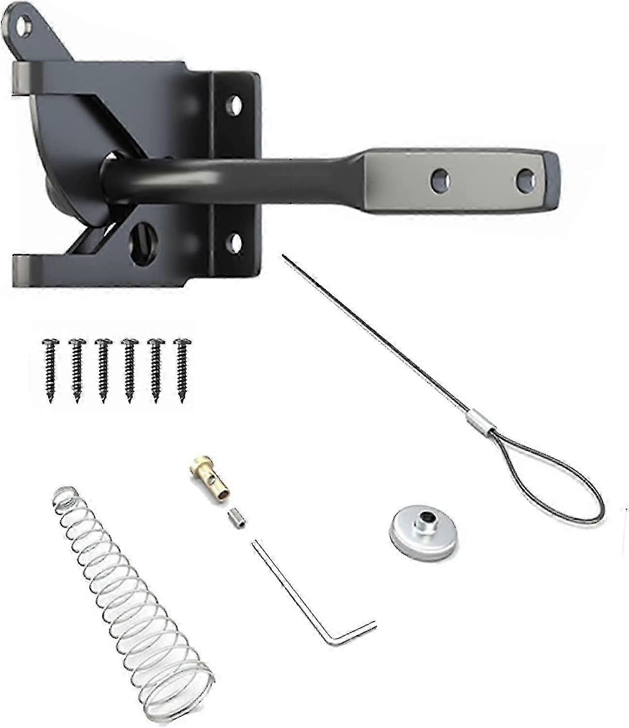 Adjust-O-Matic Heavy Duty Gate Latch : Engineered for strength and durability, suitable for heavy-duty uses like fences, barns, and cattle gates. Smooth Black Finish : The sleek black coating resists corrosion, ensuring longevity and a timeless appearance. Reversible Design : Offers flexibility for both right and left-hand mounting, accommodating various gate configurations. Gravity Lever Latch : A smart locking mechanism that activates automatically, providing secure closure without additional effort. Corrosion Resistance : Triple-protected with zinc plating, chromate dip, and baked-on enamel for unmatched resistance against corrosion. Embrace the fusion of functionality and design with our Smooth Black Finish Gate Latch. Crafted with precision, this latch boasts a versatile reversible design, allowing for seamless integration into your outdoor spaces, be it a charming garden fence or a sturdy cattle gate. Note: Due to the light and screen setting difference, the item's color may be slightly different from the pictures. Please allow slight dimension difference due to different manual measurement.
