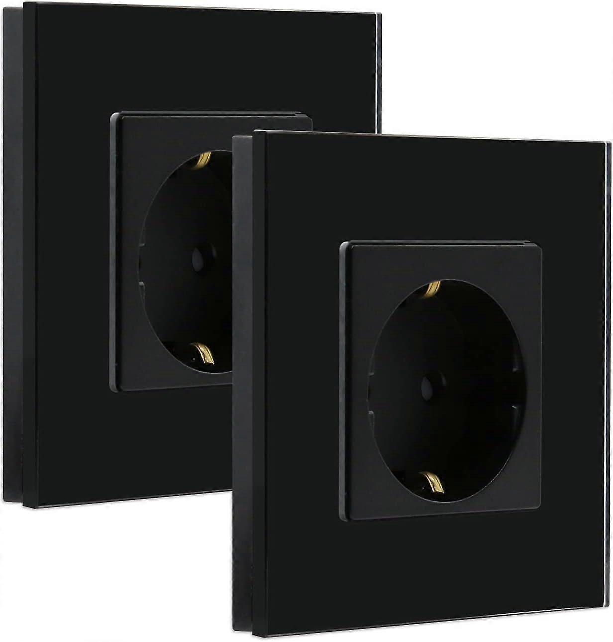 Socket 1 compartment flush-mounted socket crystal glass wall socket black 16A protective contact socket 86mm (2 pack)