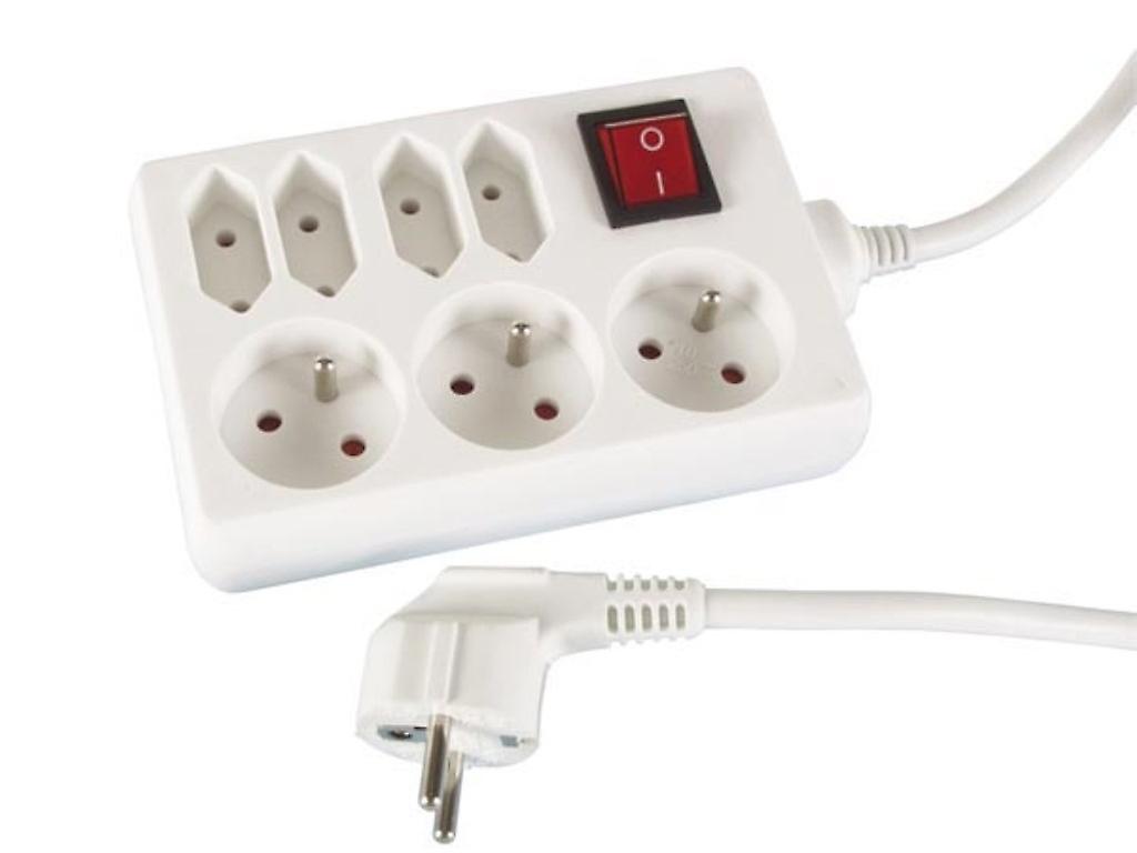 Uttag med 3 x uttag + 4 x eurouttag och strömbrytare - 1,5 M kabel - vit - fransk uttag