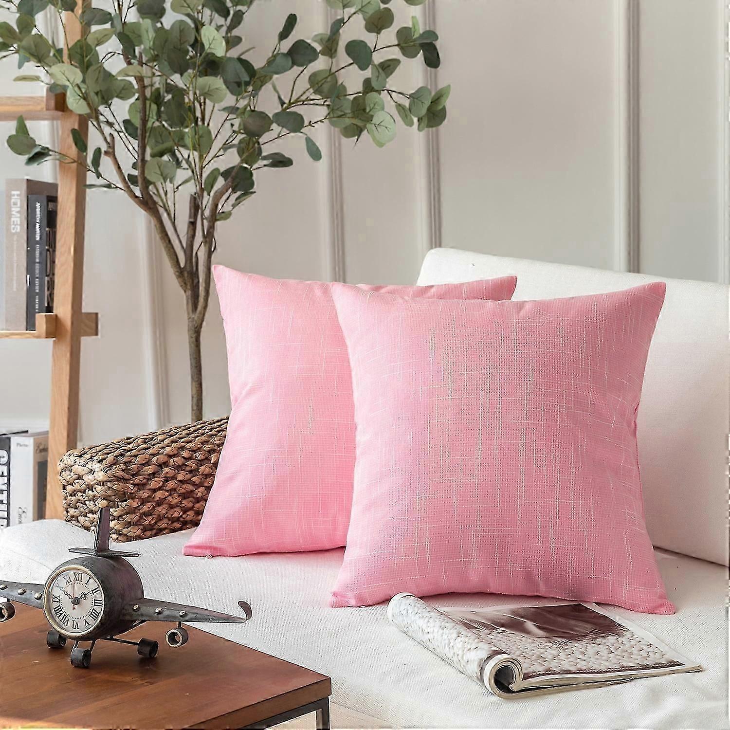 Soft Textured Linen Burlap Series Decorative Throw Pillow Covers, 18" x 18", Light Pink, Set of 2