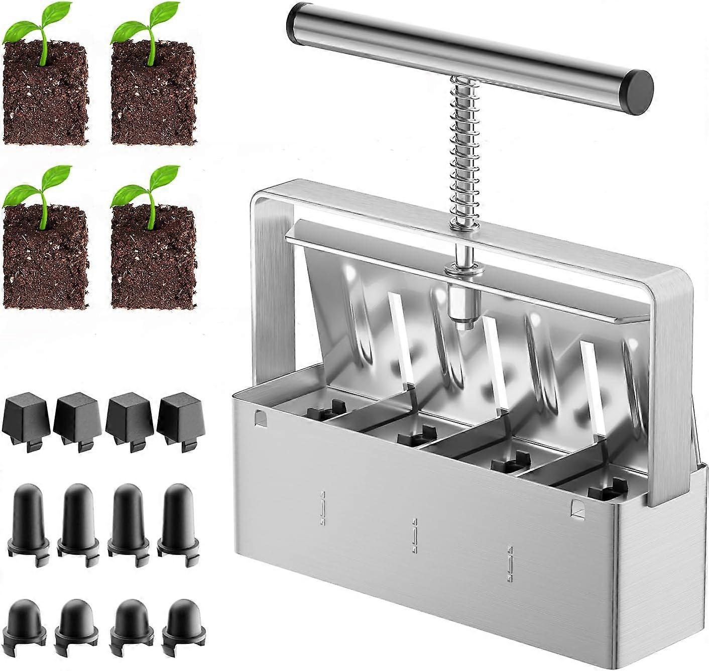 Soil Blocker, 4 Cell Soil Block Maker 2 Inch with 3 Sizes Seed Pins, Seed Handheld Block Maker with Comfortable Handle, Garden Blocking Tools for Seed
