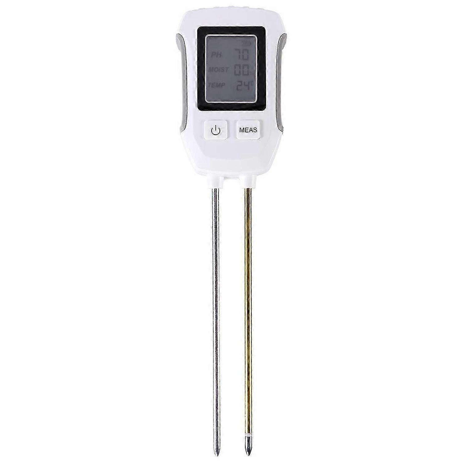 MULTIFUNCTIONAL SOIL TESTER: Our soil tester can quickly measure soil moisture, pH, and temperature to help you take better care of your plants and flowers. By measuring soil moisture, pH and temperature values, you can know when you need to adjust soil moisture and pH. LARGE AND BACKLIT LCD DISPLAY: The soil tester features a large LCD display and backlighting, making it easy to display and read digital parameters day or night. Uses 3 x AAA batteries (not included) and the screen displays the power level. HIGH TEMPERATURE METAL PROBE: The soil meter adopts metal dual probe, temperature measurement from -10℃ to 90℃ (support switching between ℃ and ℉), it is not afraid of high temperatures, which can meet your planting needs from summer to winter. EASY TO USE: Simply insert the probe into the soil about 3-5 inches (10 cm) and wait 10 seconds for an intuitive reading to get an accurate and precise reading immediately. After use, simply remove the probe from the soil and wipe it clean. Wide range of use: Indoor and outdoor use. The plant meter can be used in gardens, farms, potted plants, succulents and more.<br><br>Product Name:Digital Display Soil Detector Soil PH:3.0-9.0 Soil Moisture: 0-90%RH Temperature Range: -9℃-+90 ℃ (14℉-194 ℉) Power supply:3 x AAA alkaline batteries(not include) Measuring functions:Soil moisture,temperature,PH The probe has a , please wipe the probe with alcohol before measuring, Do not test any liquids. Colour:White Material:ABS+Metal<br><br>Package Contents: 1 x Digital Display Soil Detector<br><br>Only the above package content, other products are not included. Note: Light reflection and different displays may cause the color of the item in the picture a little different from the real thing. The measurement allowed error is +/- 1-3cm.