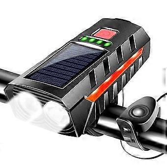 Solar Road Bike Front Lamp with USB Rechargeable Cycling Lantern, Power Display, High Beam Bicycle Flashlight for All Bikes