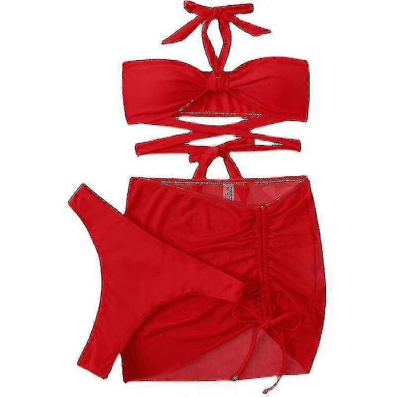 Solid Color Three-piece Split Swimsuit Beach Vacation Babes Sexy Bikini