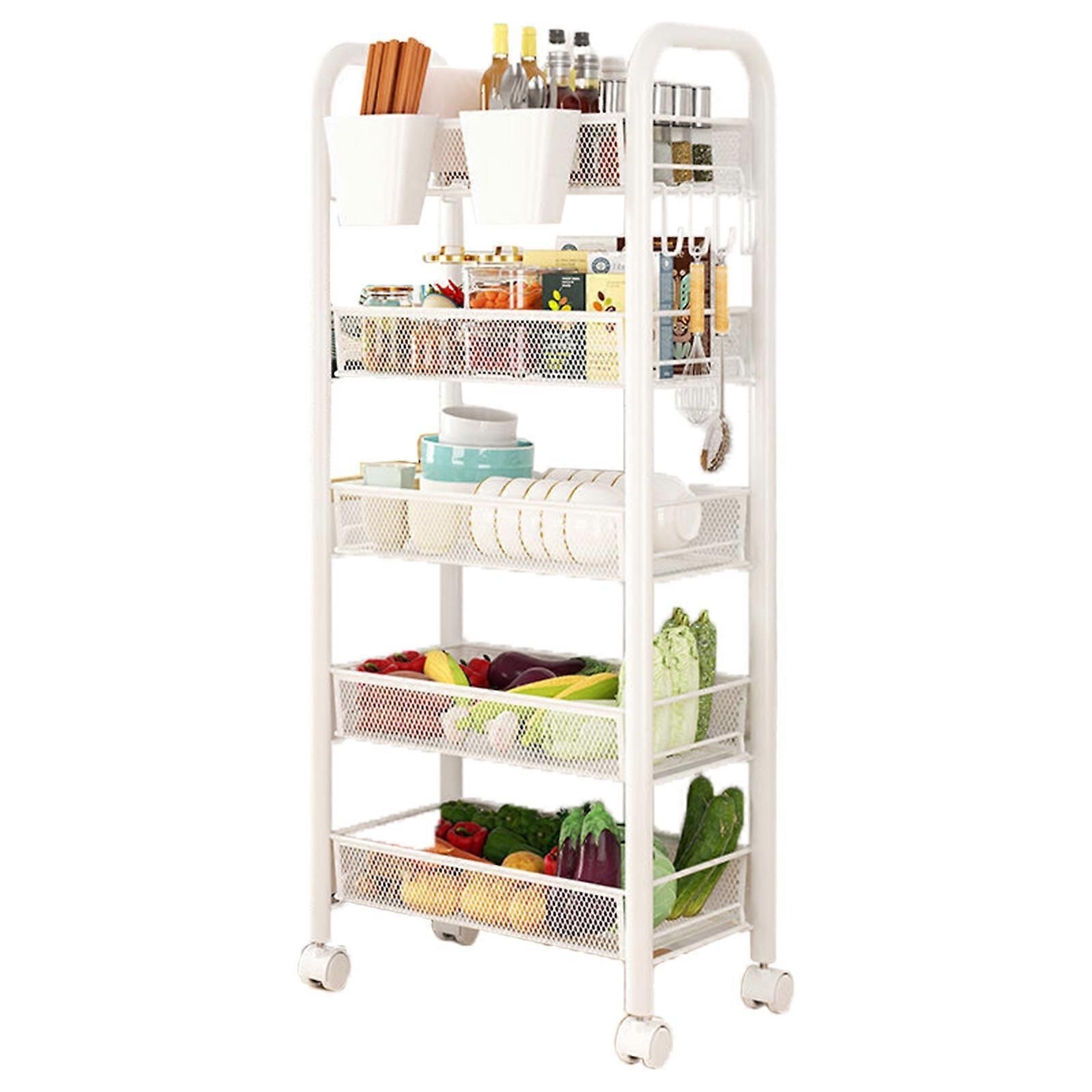 Space Saving Multi Layer Utility Cart Mobile Fruit Vegetable Storage Rack with Multiple Layer Portable Kitchen Shelves White