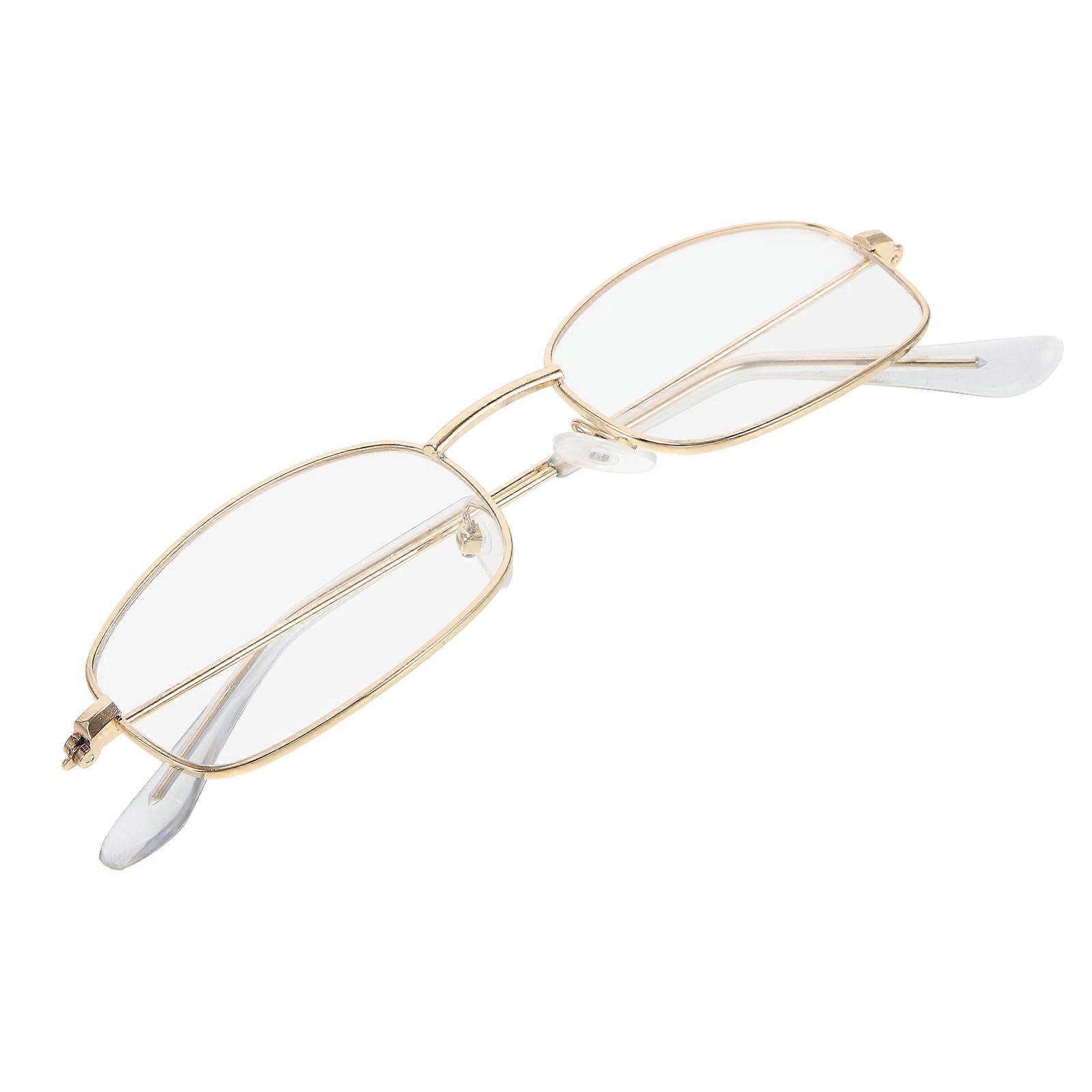 Spectacle Frame Metal Eyeglasses For Women Daily Use Golden Color Rectangular Shape Anti-Blue Light 1Pack