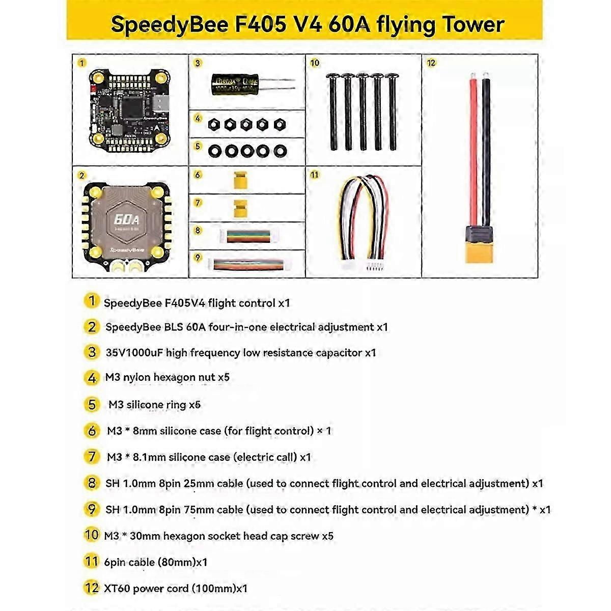 App wireless flight control & ESC full parameter adjustment Fix SD card compatibility issues Built-in barometer Flight control onboard 4-level battery indicator Gyroscope dual power supply filter Main controller: STM32F405 Gyroscope: ICM42688P USB interface type: Type-C Barometer: built-in OSD chip AT7456E Bluetooth BLE: supported, used to connect to SpeedyBee App to set flight control and ESC parameters. Please make sure that the MSP switch of serial port UART4 is turned on and the baud rate is set to 115200, otherwise the Bluetooth function cannot be used WIFI: not supported DJI Air Unit connection method: supports 6-pin socket direct plug-in and solder wire connection. 6-pin DJI air end direct socket support: fully compatible with DJI O3/RunCam Link/Caddx Vista/DJI Air Unit V1, no need to change any line sequence. Galvanometer: supported (Scale=400,Offset=0) Colour:As Shown Material:PCB type:60A Package Contents: 1 x F405 V4 Flight Controller Stack Kit Only the above package content, other products are not included. Note: Light reflection and different displays may cause the color of the item in the picture a little different from the real thing. The measurement allowed error is +/- 1-3cm.