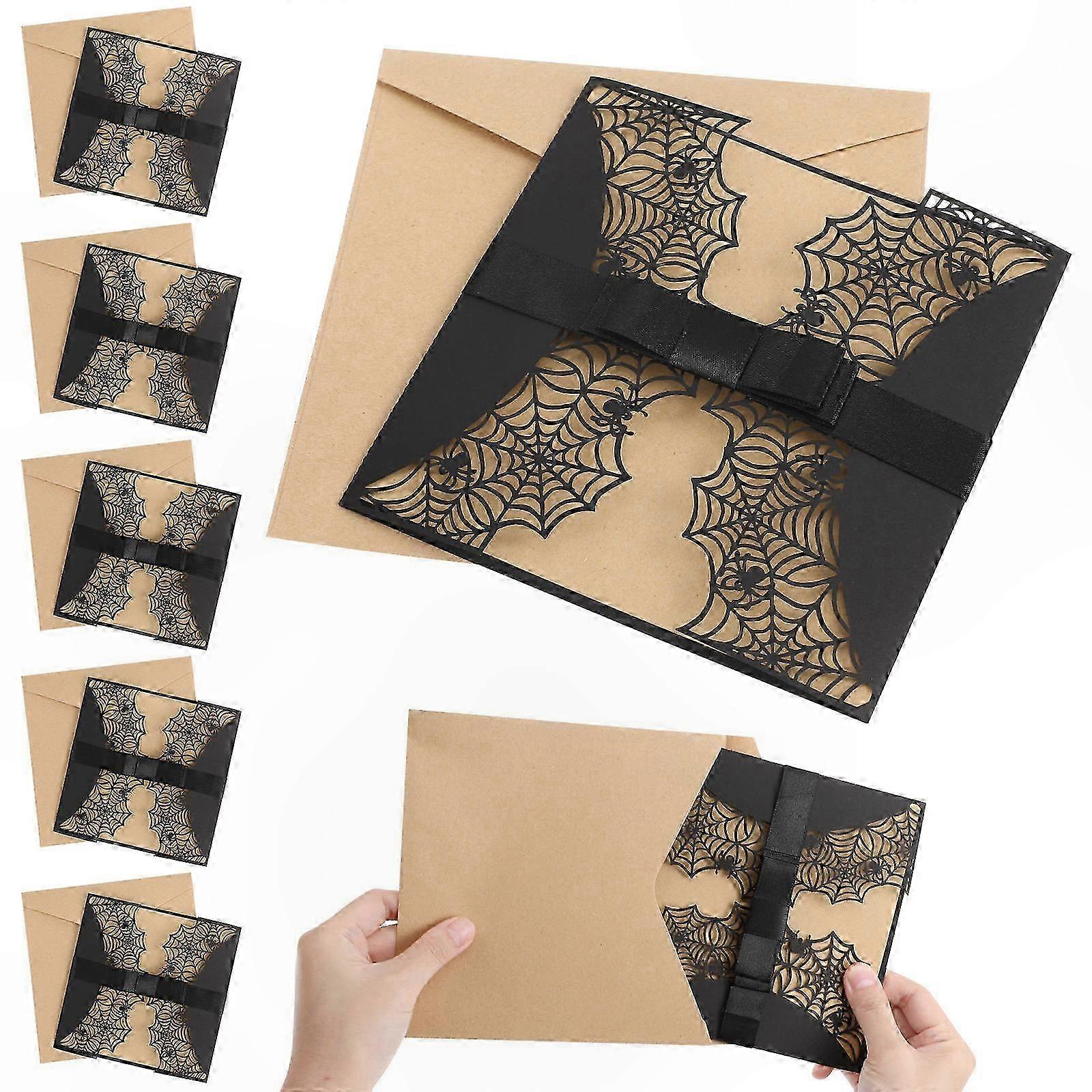 Spiderweb Design Halloween Party Invitations - Black Hollow Horror Cards (Set of 10)
